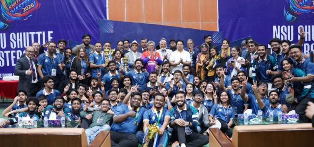NSU Indoor Badminton Tournament 2026 Grand Finale. North South University (NSU) organized the Grand Finale of its Indoor Badminton Tournament on Sunday evening, February 08, 2026, at the NSU Indoor Ground. The week-long tournament was organized to strengthen relationships and promote teamwork among the university’s senior leadership, faculty members, officers, employees, and students.