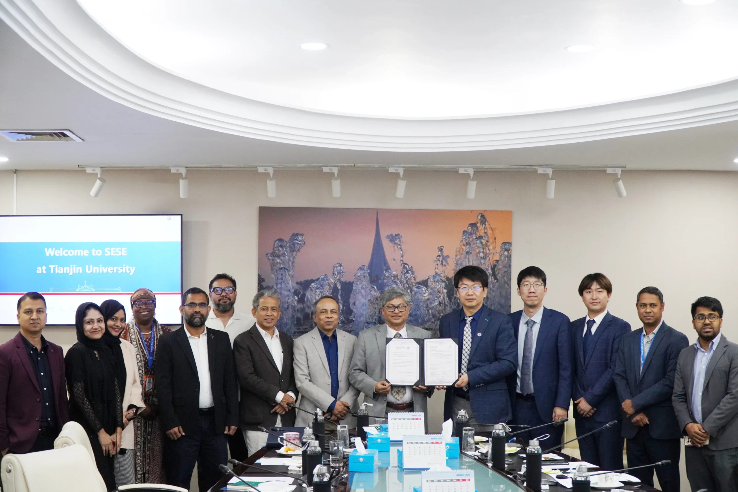 The announcement was made during a high-level meeting between NSU and a delegation from Tianjin University led by Prof. Sun Peizhe, Vice Dean, School of Environmental Science and Engineering. The delegation also included Mr. Liu Wenwei, Vice Dean, School of International Education, and Mr. Chen Yu, Program Coordinator, School of International Education.